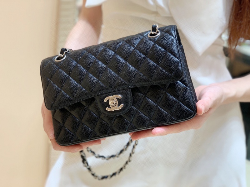 [샤넬] 클래식 캐비어 블랙 스몰 플랩백 은장 > BAG